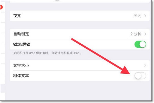 5、如果我们想要加粗字体的话,我们回到显示与亮度页面,勾选粗体文本;