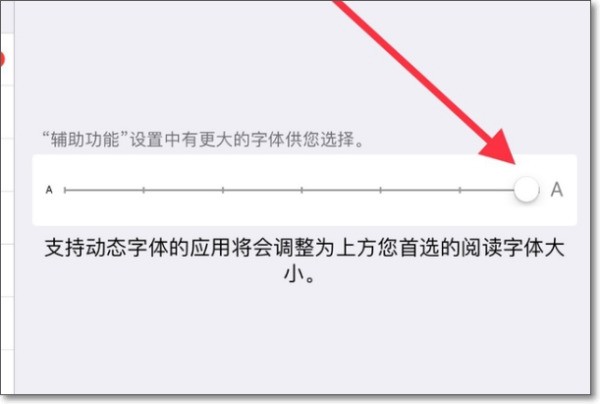 4、然后就会进入到文字大小的页面,我们滑动上方的滑块就可以调整字体大小了,往右边滑动就放推雨水有笔认善蒸鸡子丰大字体,往左边滑动是调小字体,如下图所示;
