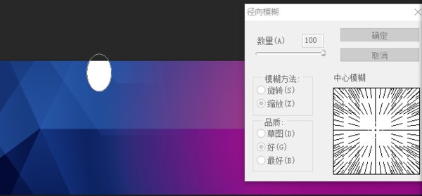9、画一个椭圆,填充为白色,滤镜,径向模糊,