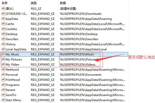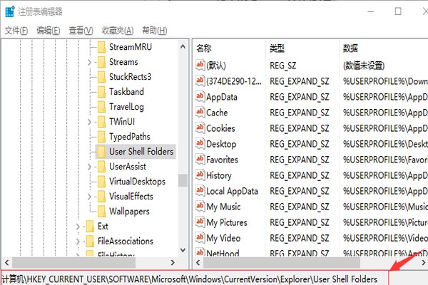 2、找到下列位置:HKEY_CURRENT_USERSoftwareMicrosoftWindowsCurrentVersionExplorerUser Shell Folders。