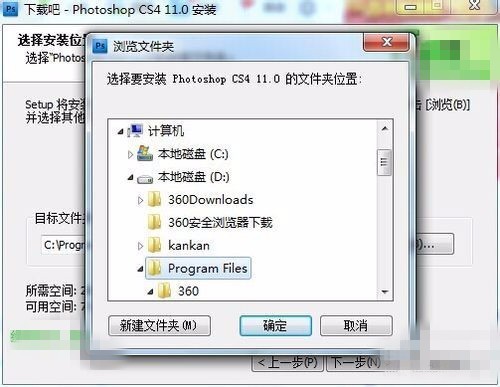 【5】选择自定义安装之后点击秋事安装,会出现下图,这是让你选择把Photoshop安装在哪里。应用软件我都是安装在D盘。点击“浏览”按钮选择D盘的一个文件夹安装。D盘的文件夹可以自己新建一个。