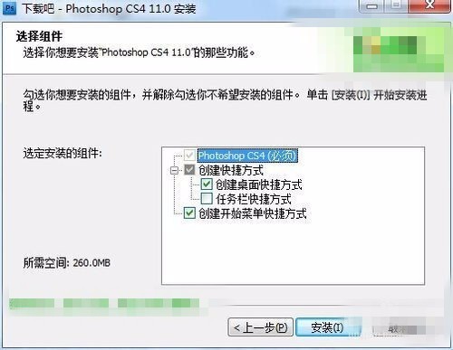 【3360问答】安装时会出现下面这个图,一般只勾选创建桌面快捷方式,这样以后打开Photoshop就双击桌面图标就可以了。任务栏快捷方式最好不要选,因为任务栏就是电脑最下面显示图标的,安装的软件多了下面就挤满了,不美观也不实用。