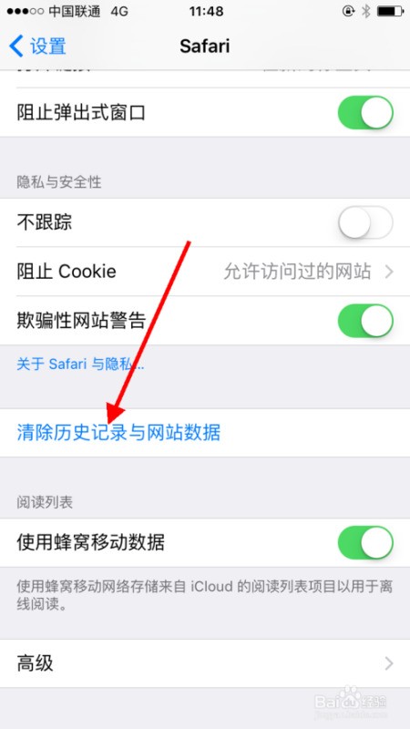第一步:打开“设置”-"Safari"-点击 “清除历史记录与网站数据"