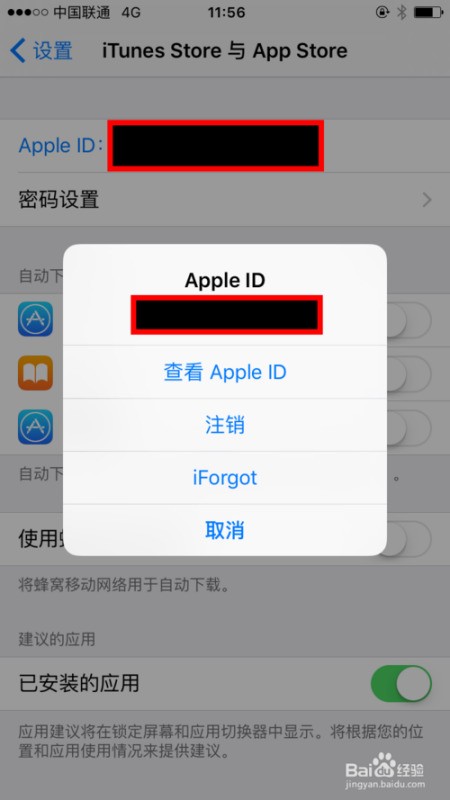 2、第二步:打名开"设置"-"iTunes store 与app store" 点击 "Apple ID:"然后"注销"帐户。