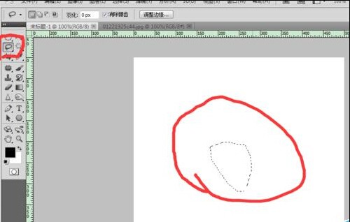 下面来介绍一般套索工具,这个工具的使用特元流情降言别简单,选择好一般套索工具,大家新建一个画布,在画布上单击,然后拖拽画出自己想画的图形,既然形成选区,所以画的图形必须是闭合的,一般箭头上有个小圆圈的时候,点击就可以闭合。