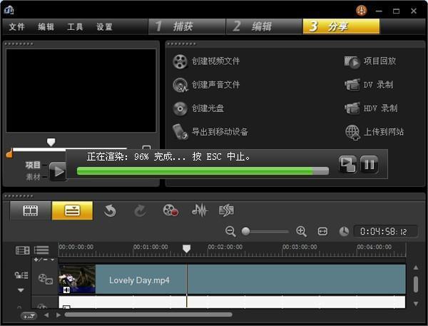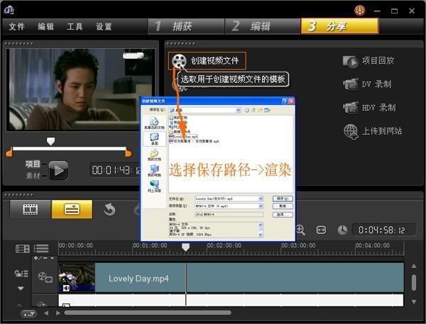 好啦,编辑好后,就可以渲染导出视频文件了。选择“分享”-“创建视频文件”,选择一个需要的格式和保存路径,保存即可渲染导出啦。