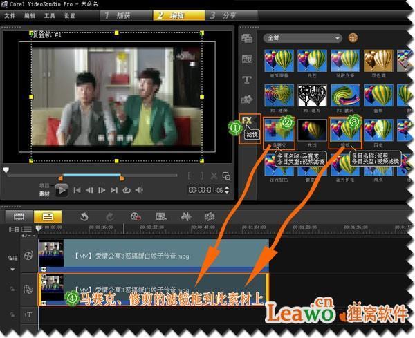 这个方法用到的软件跟上面方法二用到的软件是一样滴,马赛克滤镜(像素器),做局部效果,通常使用素材的复制,然后对其添加遮罩,之后用“马赛克和修剪”滤镜,这个就是原理哦。
