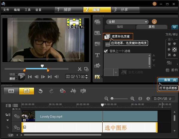 选中图形,打开选项面板,还可以可设置“遮罩和色度键”哦。