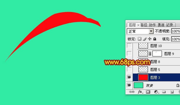 1、新建一个1000 * 600像素,分辨率为72像素的文件,背景填充淡绿色:#30E9A2。先来制作彩带的第一部分,需要完成的效果如下图。