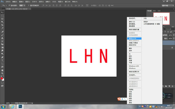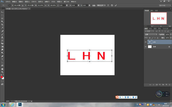 2、打开“文字工具”,打字,调整大小位置,栅格化文字;