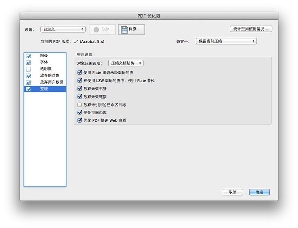 完成这些设置选项后,点击“确定”,此时Acroba数车雨头里t 会开始压缩PDF文档,通常这需要一点点时间。