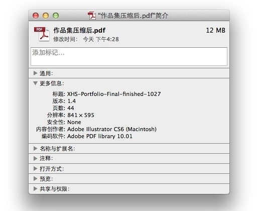 1. 下图是一个留学作品集案例,用Illustrator CS6 制作完成后直接输出的无压缩版本。显然这个尺寸是不符合校方要求的。下面就教大家压缩到合适的尺寸。