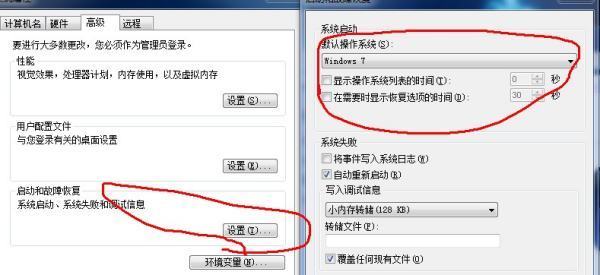 1.开机之后,右击计算机,然后点属性 就有了系统控制面板的对话框,然后点左栏的高级系统设置,弹出系陆旅统设置对话框,点击高级标签,标签下有个启动和故障回复,点击右下角的设置,进行默认操作系统设置。如图: