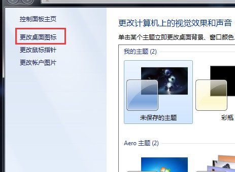 二、打开个性化窗口后,点击左侧“更改运胡桌面图标”。