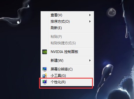 一、WIN7系统:右键点击桌面空白处,菜单内点击“个性化”。