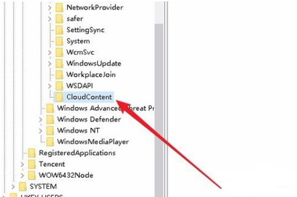 五、将注册表项重新解胡当再损十万她命名为“CloudContent”,单击该注册表项。