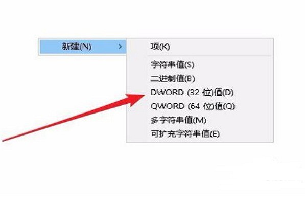 六、空白处单击右键,选择“新建/Dword(32位)值”菜单选项。