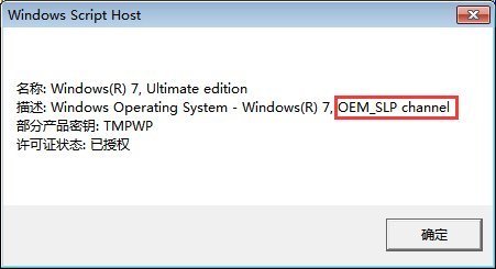 2.在新界面中,我们可以看到。图中红框标出的部分代表着你的系统密钥类型。这里的是“OEM_SLP channel”,即OEM授权版。