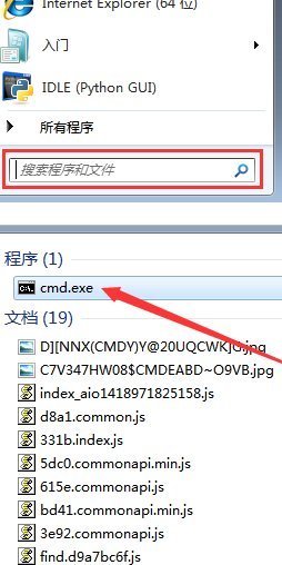 1.点击开始菜单,找到运行命令行,输入“cmd”,打开DOS界面。
