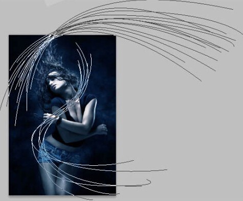 用钢笔工具勾出下图所示的光线造型,这步需要的是耐心。要绘制到文档外面那么多是为了方便接下来这一步。