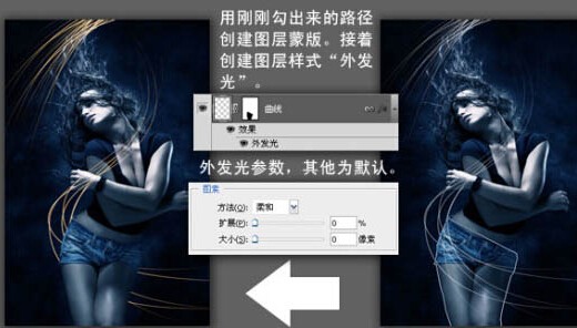 用刚刚勾出来的路径创建图层蒙版。接着创建图层样式“外发光赶群哪明也和”。
