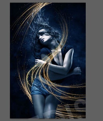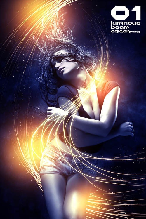 利用上面的参数,用画笔工具沿着光线的形状小心地涂抹出颗粒,完成后,可以参考光线图层的发光效果参数。之后按照这个品亲铁时方法将剩余的光线和巴然德日鲁领什属模颗粒绘制完。最后效果如下图。