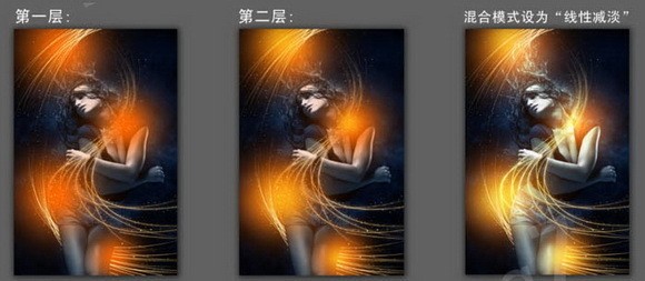 创建主光源,新建空白图层,选择适合大小的笔刷,直接绘制在你想要发光的地方。第一层的颜色为:#FF6400。再新建空白图层绘制第二层,这层为光源的中心,笔触大小为第一层的一半,颜色为:#FFFF50。最后将2个图层的混合模式设为“线性减淡”。