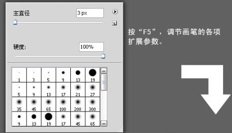 这一步最重要的是选好画笔的大小跟笔触的参数。可以在界面按下F5,调节画笔的各项扩展参数。