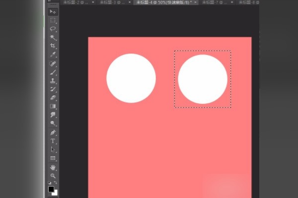 4、选择矩形选框工具,将白色的正圆框在里面。