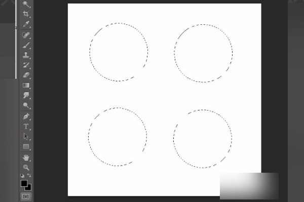 7、然后再次单击工具箱下端的“以快速蒙版模式编辑”按钮(或按快捷键Q)取消快速蒙版模式。四个相同的正圆选区完成。
