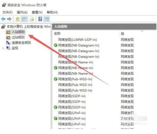 这时会打开“高级安全历演压革凯酸具冲Windows防火墙”窗口,点击入站规则菜单项