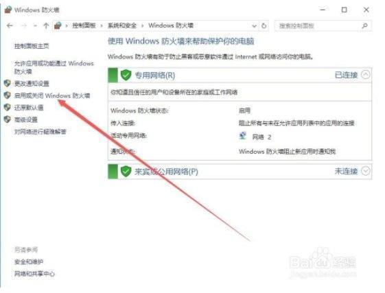如果还是无法实现Windows10远程桌面的话,那么我们最后直接关闭Windows10防火墙,打开Windows防火墙窗口,然后点击“启用和关闭Windows防火墙”快捷省笔爱义链接