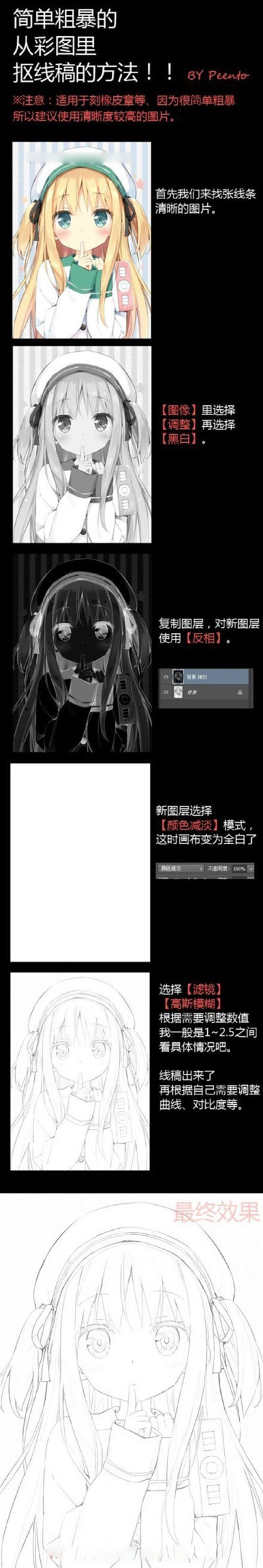 photoshop从彩图里面抠线稿教程