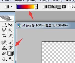 7、点击工具箱中的渐变填充工具,同时选择渐变样式,如图: