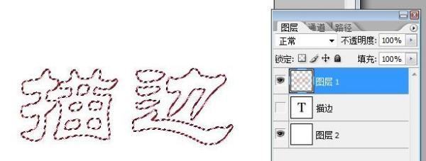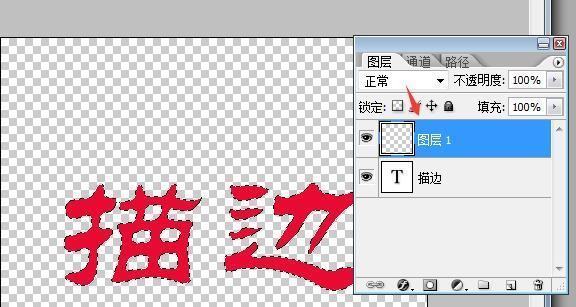 6、按住Ctrl键点击描边图层,如图: