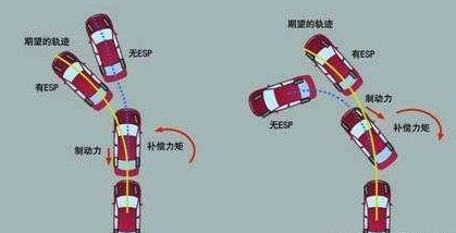 ESP如何保实现车辆防滑的?其实就是通过单独控制四个车轮刹来实现的,除了刹车之外还会控制发动机功率输出。当车辆出现侧滑时侧滑传感器横向加速传感器就会传递信号给防侧滑系统,例如右转弯过急或者路面附着力下降的时候,车辆尾部必然会像左甩(漂移)。这时候ESP系统只会ABS系统对左前轮单独刹车,尽量避免或者降低甩尾的程度。