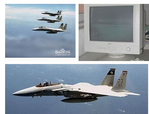 执行“文件→打开”菜单命令,弹出“打开”对话框中,选择本目录,按住Ctrl键选中computer.jpg、back.jpg、plane.jpg、等三个图像文件,单击“打开”按钮,三个图像文件被打开,如下图所示。