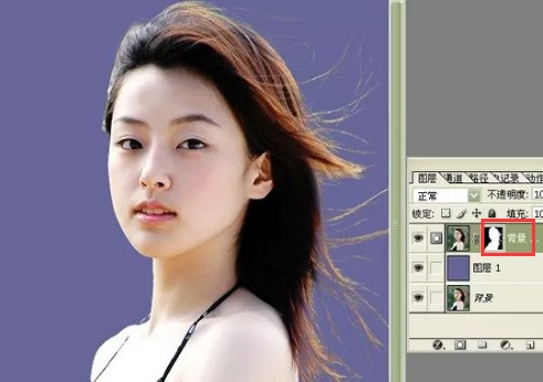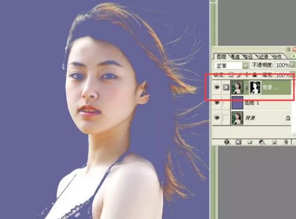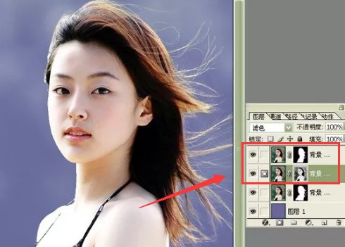 4、载入红色副本通道,回到图层面板添加蒙版(别忘了复制背景和添加一个新的纯色背景)