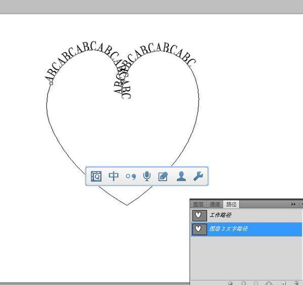 我像制作这样的心形路径文本,如果打英文,效果是可以出来的,如下图,但是