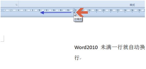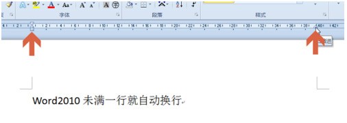 1、如图所示,当娘息采文类材Word2010中的文本少于一行时,将自动换行。