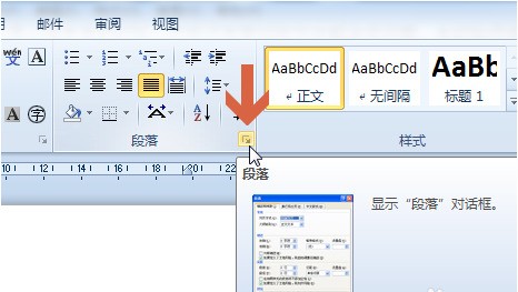 6、此外,当您发现Word2010中的文本少于一行时会自动360问答换行时,您还可以单击Word2010start选项卡中的段落按钮,如图所示。