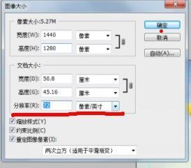 方法2:选择【图像】-【图像大小】,修改分辨率大小和单位,正常分辨率设置不超过300像素/英寸。