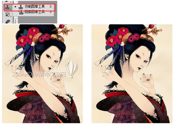 1、使用仿制图章工具去水印