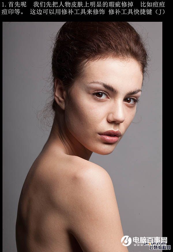1、首先,我们先把人物皮肤上明显的瑕疵修掉,比如痘痘,痘印等。这边可以用修补工具来修饰。