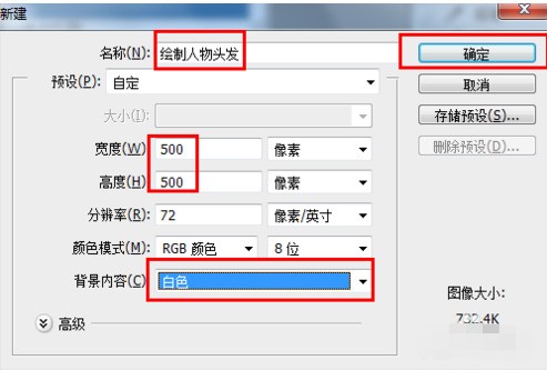 新建一个文档,大小可自定义,也可以按如图所示设置。