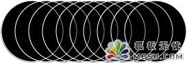 在这里我们把间距设为150%,是为了更好地看清楚笔刷圆点大小变化的效果,如果把间距设为标准的25%,那么就是如下右图的效果了。看起来有点像被磨损的印章边缘。