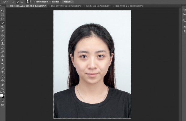 图片的前期拍摄需要找一面受光均匀的白墙,模特的头发捋顺规整,证件照中最好不要出现乱发碎发。另外还需注意头部、五官是否正直,避免给后期带来不必要的麻烦。