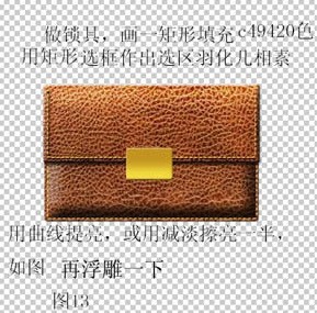 15、做锁具,画一矩形填充颜色:#c49420,用矩形选框做出选区,适当的羽化后用曲线提亮,或用减淡工具擦亮一半,如下图。确定后再加上浮雕效果。