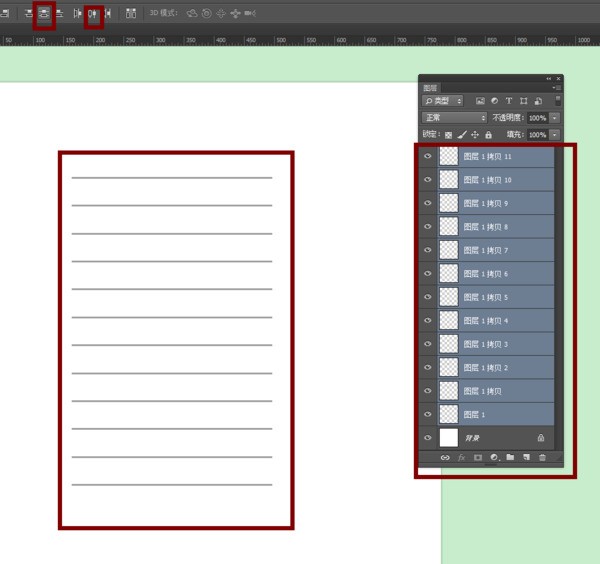 在PS里我想做表格,画完线后想用简单方法把每条线之间的间距平均分配?哪位能知道呢?