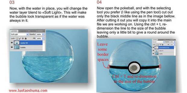 2、 使用Ctrl+T命令将水波层变形成如下效果(不需要的部分可以使用橡皮擦工具擦除掉)